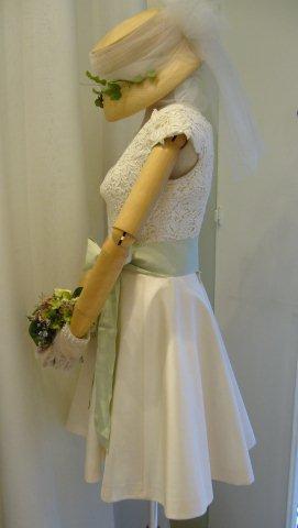 グログランリボンのベルトには優しいグリーンを。