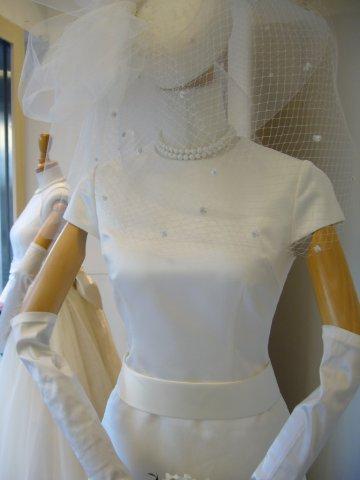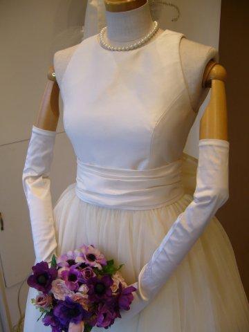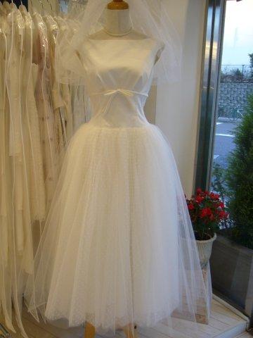 素材はマットなサテンを使用し、ドットチュールを取り入れました。