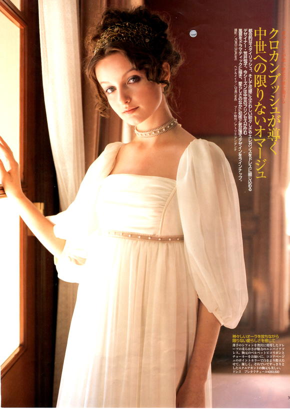 優しい素材のエンパイアのドレスには、ベルトとお揃いのチョーカーを。
