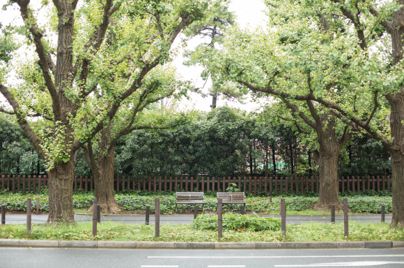 並木道を背にしてポートレート風に